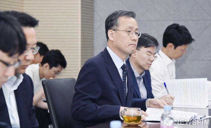 [서울=뉴스핌] 이길동 기자 =이형일 기획재정부 장관 직무대행 1차관이 12일 오후 정부세종청사 중앙동에서 열린 '제17차 부동산 시장 및 공급상황 점검 전담반 회의'를 주재하며 모두발언을 하고 있다.2025.06.12 gdlee@newspim.com