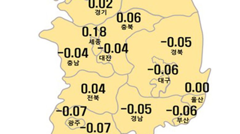 수도권을 제외한 지방의 평균 하락 폭(-0.04%→-0.03%)도 축소됐으나 광주는 지난주 -0.06%에서 이번 주 -0.07%로 하락 폭이 커졌습니다.