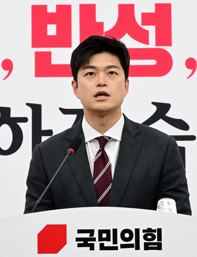 김용태 국민의힘 비상대책위원장이 12일 국회에서 '검찰해체 4법'과 관련해 입장을 발표하고 있다. /이병화 기자 |