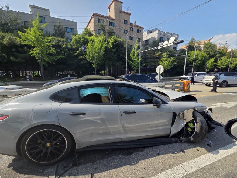 A 씨는 전날 오후 3시 25분경 의정부시 금오동의 한 도로에서 포르쉐를 몰다가 신호 대기 중이던 스포츠유틸리티차량(SUV)를 들이받아 연쇄 추돌 사고를 낸 혐의를 받는다.