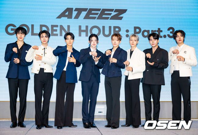 에이티즈는 12일 오후 서울 마포구 호텔 나루 서울 엠갤러리에서 미니 12집 '골든 아워 : 파트 3(GOLDEN HOUR : Part.3)' 발매 기념 기자간담회를 열고 새 앨범에 대한 이야기를 나눴다.