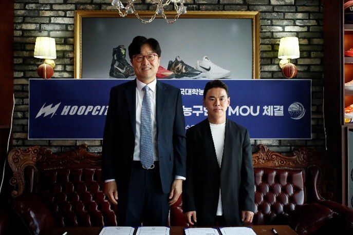 이 자리에는 대학농구연맹 김양구 회장과 훕시티 박성진 대표가 참석했다.