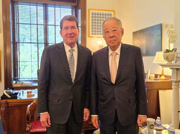 류진 한국경제인협회 회장(오른쪽)이 11일(미 워싱턴 현지시각) 워싱턴D.C.에서 빌 헤거티 상원의원(공화, 테네시)을 만나 주요 현안과 양국 경제발전 방안에 대해 논의했다. [사진=한국경제인협회] |