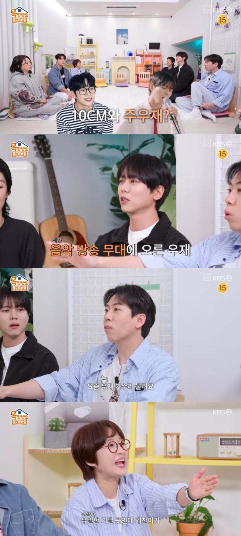 이날 주우재가 10CM와 함께 음악방송에 올랐다는 화두가 던져지자, 양세찬은 "요즘 우재 그냥 가수라 불린다. 예능이 아니고. 가창력이야 너의 매력이야?"라며 궁금증을 드러냈다.