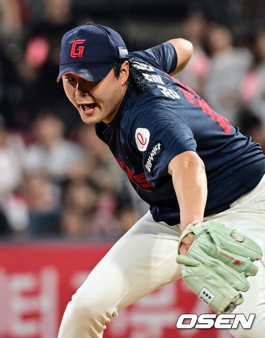 롯데 정철원이 7회말 무실점으로 이닝을 끝내며 세리머니를 하고 있다. 2025.06.12 /cej@osen.co.kr