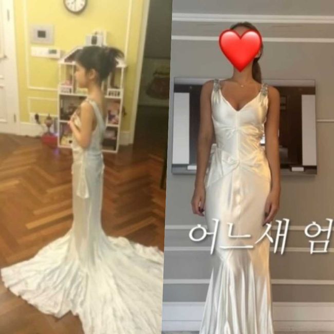 김남주는 “라희가 이 드레스를 입은 사진이 있다. 정말 귀엽고 사랑스러웠다. 지금은 어디 있는지 모르겠다”고 말했지만, 이내 영상에는 어린 시절 드레스를 입은 꼬마 라희의 사진과 함께, 훌쩍 자라 엄마의 드레스를 다시 착용한 최근 라희의 모습이 나란히 공개됐다.