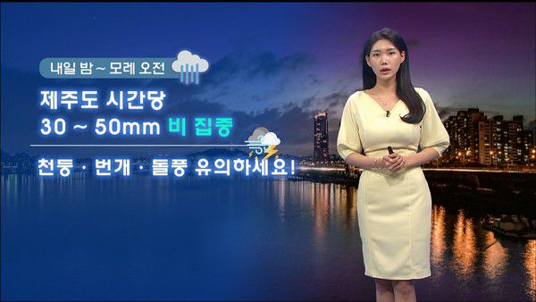 내일 밤부터는 제주도에 시간당 30-50mm의 폭우가 쏟아지기도 하겠고요, 내일 밤부터 제주도에는 시속 70km가 넘는 강한바람도 불어들겠습니다. 모레에는 남해안으로도 차츰 바람이 강해지겠습니다.