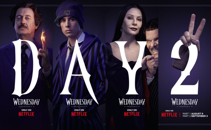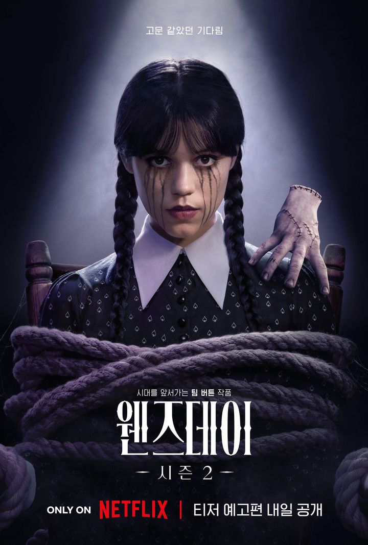 '웬즈데이' 시즌2는 새 학기를 맞아 네버모어 아카데미에 돌아온 웬즈데이 아담스가 자신을 둘러싼 더 오싹하고 기이해진 미스터리를 마주한 가운데, 그 뒤에 숨겨진 진실을 찾아가는 이야기다. 공개된 '웬즈데이' 시즌2 캐릭터 포스터는 '웬즈데이' ​특유의 미스터리하고 오싹한 분위기를 담아냈다. 특히, 캐릭터별 포스터를 순서대로 배열하면 'WEDNESDAY 2'라는 제목이 완성되는 점이 숨은 재미를 더한다.