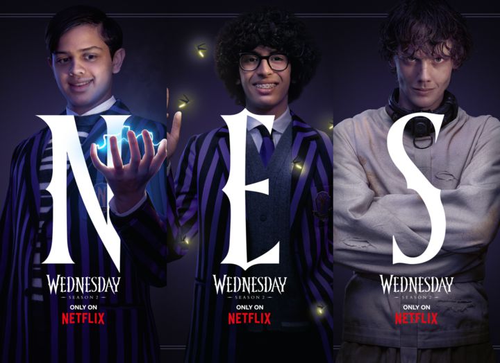 '네버모어 아카데미'에서 일어나는 온갖 사건들을 모두 꿰고 있는 웬즈데이의 룸메이트이자 친구인 이니드(에마 마이어스)가 손톱을 길게 세운 모습은 지난 시즌 늑대인간으로 각성에 성공한 그가 이번 시즌에서 더욱 강력해진 능력을 선보여 '웬즈데이'와 함께 활약할 것임을 암시한다. 이어 타인의 마음을 조종할 수 있는 사이렌 능력을 사용하고 있는 비앙카(조이 선데이)의 포스터는 시즌​2에서 벌어질 사건들 속에서 그가 어떤 역할을 하게 될지 호기심을 자극한다.