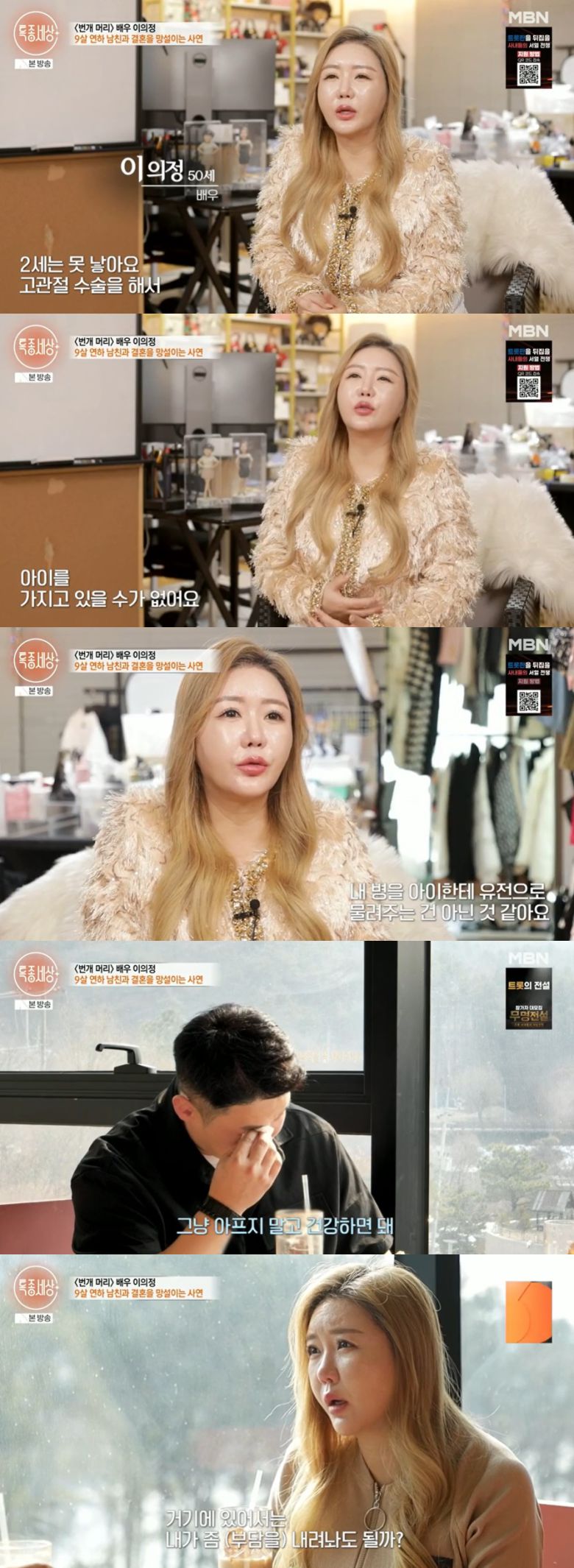 이의정은 "솔직히 결혼을 많이 미루고 했었던 것도 그런 게 마음에 걸렸다. 평범하게 사람들이 하는 일인데 나는 그렇게 못하니까"라며 눈물을 흘렸다.