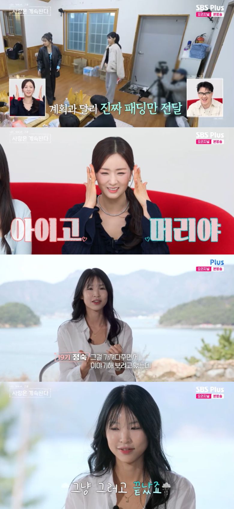 19기 정숙은 "패딩을 빌려주셔서 그걸 갖다주면서 얘기를 해보려고 했는데 실패했다. 플러팅 실패. 그냥 패딩만 줬어요. 그냥 받자마자 휭 돌아가셔서 그냥 그러고 끝났다"라며 아쉬움을 드러냈다.
