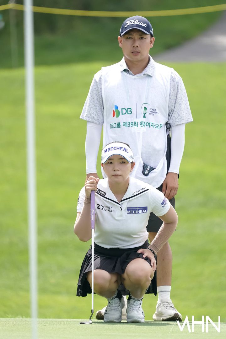 [mhn포토] 이다연, 콤비 캐디와 살피는 퍼트 라인
