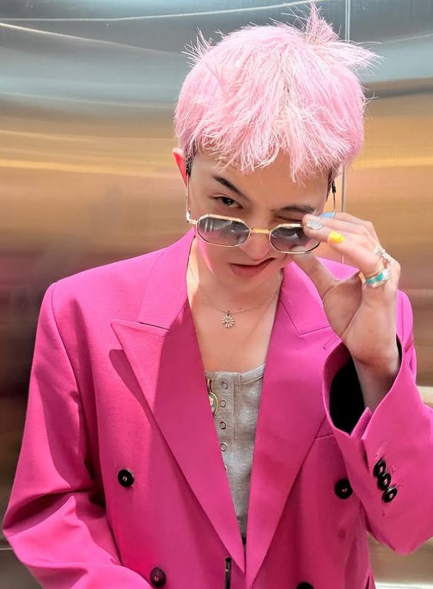 ‘핑크 헤어에 장미꽃 상의까지...’ 역시 지드래곤……“소화 못 하는 게 없네”