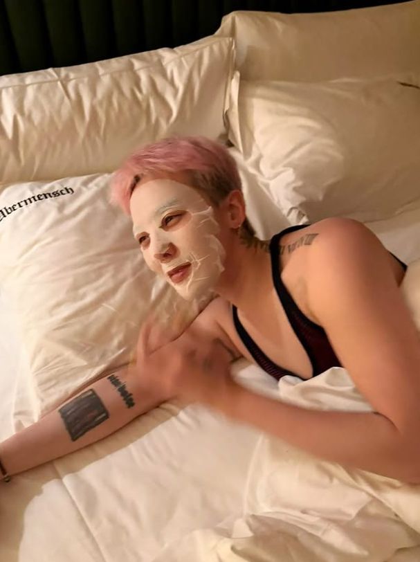 또한, 투어 백스테이지로 보이는 곳에서는 검은색 플리스 로브와 화려한 패치가 달린 모자, 노란색 틴트 선글라스로 편안하면서도 힙한 스타일을 연출했다. 은색 조형물 사이에서 포즈를 취한 사진은 그의 예술가적인 감각을 엿보게 한다.