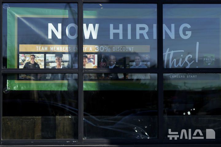 [노스브룩=AP/뉴시스]지난 1월21일 일리노이주 노스브룩의 한 식료품점에 채용 공고가 붙어있다. 2025.06.12.
