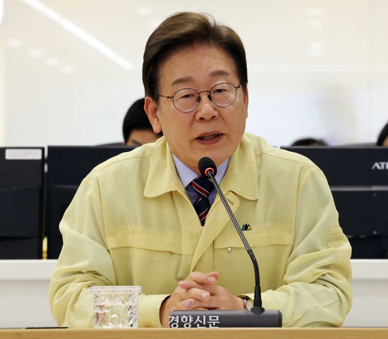 이재명 대통령이 12일 수해 대비 홍수 예·경보 시스템 현장 점검을 위해 서울 서초구 환경부 한강홍수통제소를 방문해 인사말을 하고 있다. 김창길 기자 |