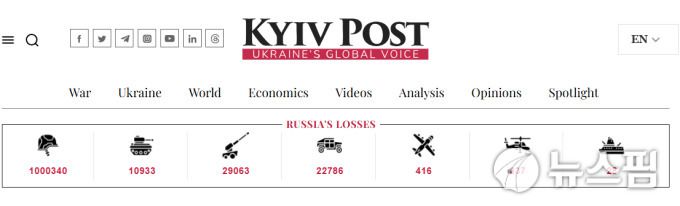 러시아군 피해 규모. 우크라이나 현지 매체 키이우포스트 홈페이지 캡처. |