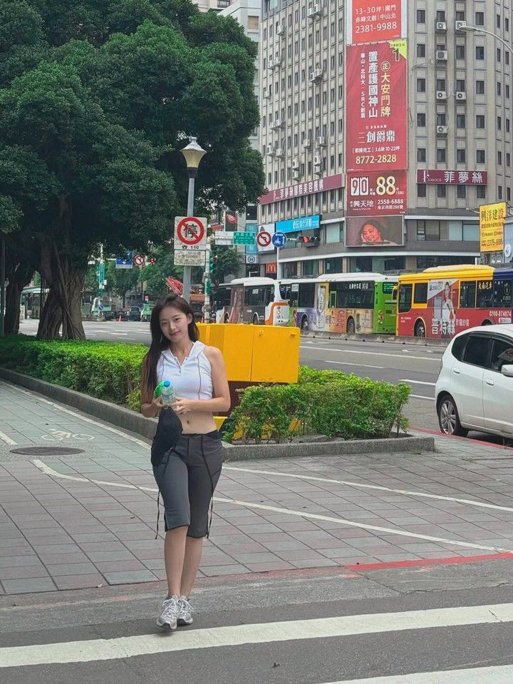 또 다른 사진에서는 흰색 크롭 탑과 앞서 착용한 그레이 반바지를 다시 매치해 시원하면서도 캐주얼한 분위기를 연출했다. 편안한 스타일 속에서도 스타일리시한 매력을 발산했다.