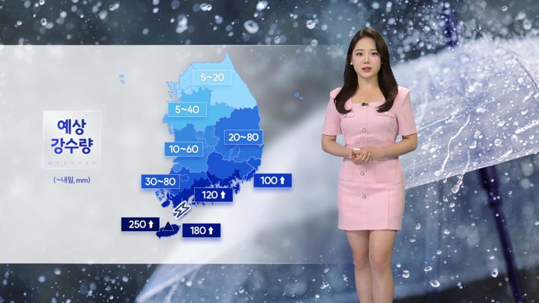 비의 양은 제주도에 많게는 180mm 이상, 산간에 250mm 이상, 남해안에도 120mm 이상의 매우 많은 비가 내리겠습니다.