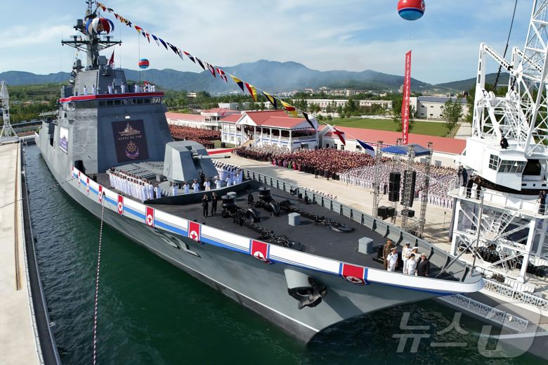 (서울=뉴스1) 유민주 기자 = 북한이 지난달 진수식 중 파손된 신형 5000톤급 구축함을 22일 만에 복원해 진수식을 진행했다고 밝혔다.