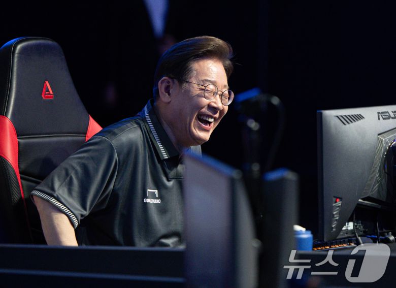 이재명 더불어민주당 대통령 후보가 17일 오후 'K-콘텐츠–e스포츠 LEVEL UP!' e스포츠 산업 현장간담회에서 게임 '리그오브레전드'를 체험하던 중 미소를 짓고 있다. 2025.5.17/뉴스1 ⓒ News1 이재명 기자 |
