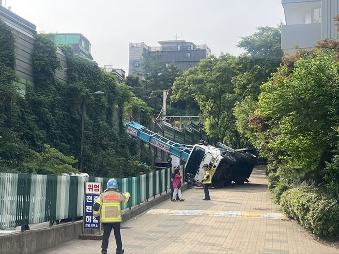 서대문구서 넘어진 사다리차 [사진 출처 = 연합뉴스] |