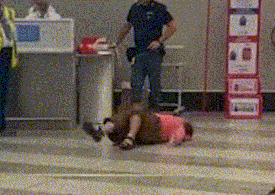 그러자 이 중국인 여성은 항의의 의미로 바닥에 드러누웠다. 당시 상황이 담긴 영상을 보면 여성은 누워서 팔다리를 휘두르며 울부짖는다. 당황한 공항 직원들과 승객들은 그저 멍하니 이를 지켜본다.