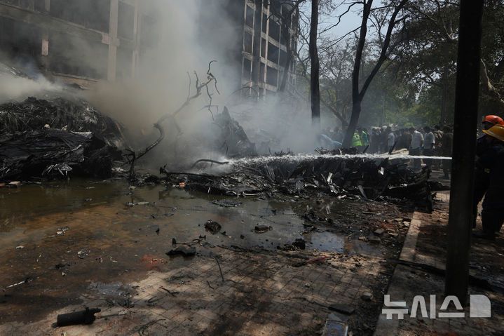 [아마다바드=AP/뉴시스] 12일(현지 시간) 인도 구자라트주 아마다바드에서 발생한 여객기 추락 사고 현장에서 소방대원들이 화재 진압을 하고 있다. 이날 오후 아마다바드 공항에서 이륙한 영국행 에어인디아 AI171편 여객기가 추락해 탑승자 242명 가운데 1명을 제외한 전원이 숨졌으며, 추락 현장의 학생 등 약 50명도 사망한 것으로 전해졌다. 2025.06.13.