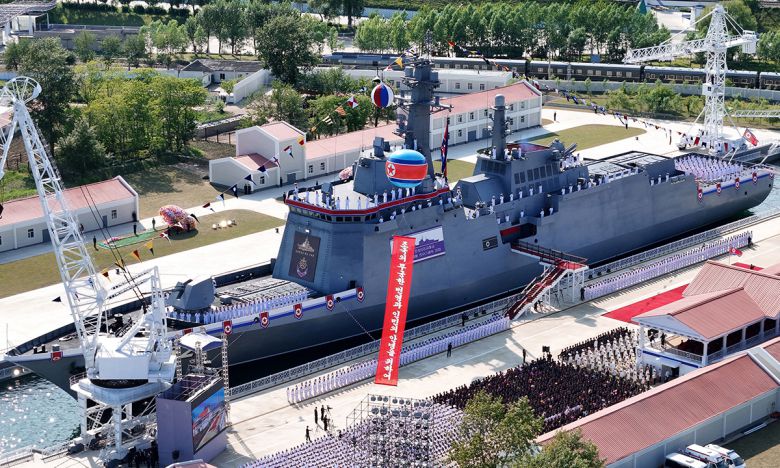 북한이 지난 12일 라진조선소에서 새로 건조한 해군 구축함을 '강건호'로 명명하고 진수기념식을 개최했다고 조선중앙통신이 13일 보도했다. 평양=조선중앙통신·연합뉴스 |