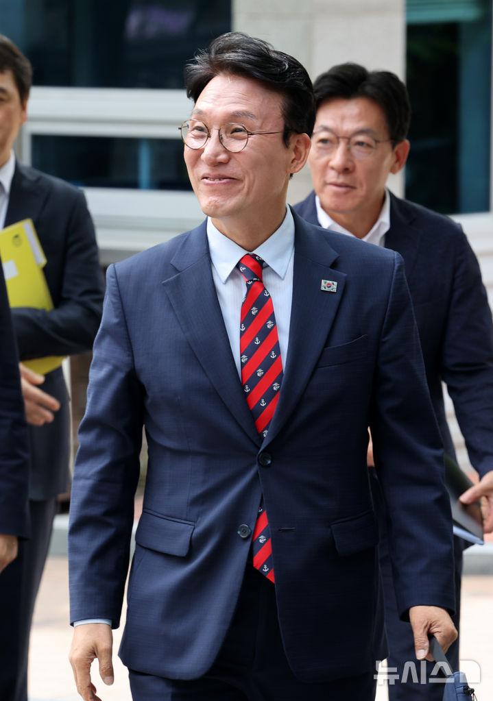 [서울=뉴시스] 배훈식 기자 = 김민석 국무총리 후보자가 13일 오전 서울 종로구 금융감독원 연수원에 마련된 인사청문회 준비사무실로 출근하고 있다. 2025.06.13. dahora83@newsis.com |