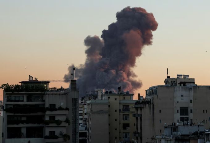 27일(현지시간) 레바논 수도 베이루트 남부 교외 지역에 있는 헤즈볼라 사령부를 향해 이스라엘이 정밀 공습을 감행했다. [사진=로이터 뉴스핌] |