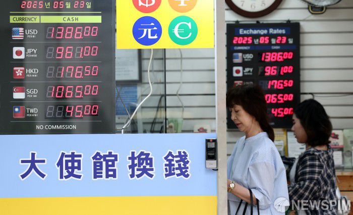 [서울=뉴스핌] 최지환 기자 = 달러/원 환율이 1370원대에 진입하며 6개월 만에 최저 수준으로 떨어진 23일 오전 서울 중구 명동의 한 환전소에 환율 시세가 표시되고 있다. 2025.05.23 choipix16@newspim.com |