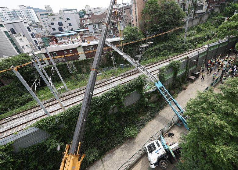 소방 관계자는 이날 오전 10시 50분 사고 현장 브리핑에서 “코레일 측이 (넘어진 사다리차를) 절단해 끌어 올린 뒤 선로 복구 작업을 할 예정으로, 현재는 사다리를 절단하는 작업 중”이라며 “(복구까지) 최소 5시간 소요될 것으로 예측된다”고 했다. 이에 따라 KTX와 일반열차 운행 정상화는 오후 4시쯤에야 가능할 것으로 전망된다.