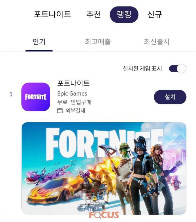 에픽게임즈의 '포트나이트'가 6월 11일 원스토어 입점 확장 출시 하루만에 원스토어 전체 인기 랭킹 1위를 기록했다.