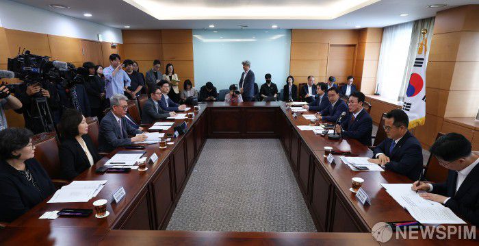 [서울=뉴스핌] 이길동 기자 = 김민석 국무총리 후보자가 13일 서울 종로구 통의동 금융감독연수원에 마련된 청문회 준비 사무실에서 열린 밥상물가 안정을 위한 경청 간담회에서 발언하고 있다.2025.06.13 gdlee@newspim.com |