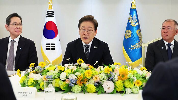 이재명 대통령이 오늘 오전 10시, 용산 대통령실에서 5대 그룹 총수, 경제 6단체장들과 간담회를 가졌습니다.