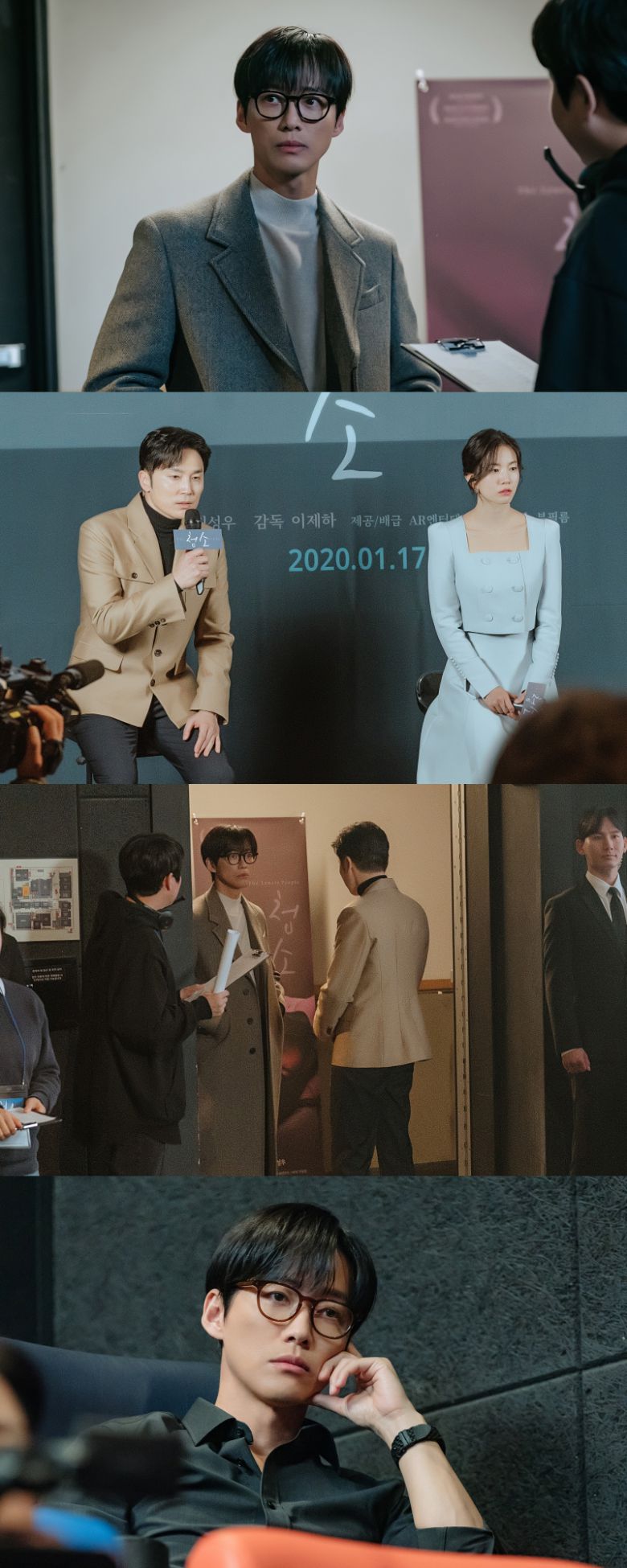 방송에 앞서 공개된 사진에는 이제하가 영화감독으로서 첫발을 디디는 날의 모습이 생생하게 담겨 있다. 오랜 시간 공을 들여 준비한 작품을 세상 밖으로 꺼내놓는 첫 순간, 신인 감독의 설렘과 긴장감 섞인 표정이 풋풋함을 더한다. 여기에 이제하와 마찬가지로 신인이었던 배우 채서영(이설 분), 제작자 부승원(서현우 분)까지 5년 전 패기 가득했던 그들의 시작을 만나볼 수 있다.