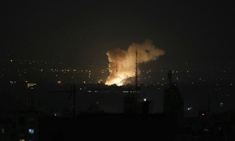 13일(현지시간) 이란 수도 테헤란에서 이스라엘의 공습으로 폭발과 연기가 발생한 모습. AP연합뉴스 |
