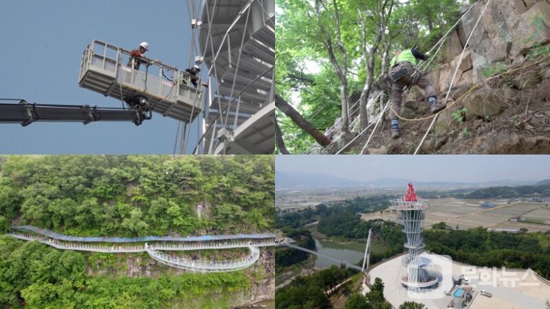 뿐만 아니라 잔도와 전망대를 고정하고 있는 현수 케이블 역시 외부의 힘(강풍, 지진, 온도 변화 등)에 유연하게 '버틸 수 있도록' 하기 위해 강선의 장력 상태를 주기적으로 측정하고 조율해야만 한다. 여기에 길이 201M, 폭 2M인 현수형 인도교의 야간 LED 경관 조명 교체를 위해서도 지상 30M 허공 위에서 아찔한 작업이 이뤄진다. 높이 53m의 전망대에서도 벗겨진 페인트칠을 보수하기 위해 크레인까지 동원해 도색 작업이 진행된다.