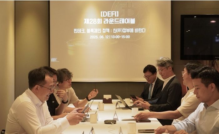 한국핀테크산업협회 산하 디지털경제금융연구원(원장 정유신)이 지난 12일 김영환 페이민트 대표, 전재식 핀크 사업총괄, 서병윤 DSRV CSO, 정구태 인피닛블록 대표, 박승민 법무법인 화우 전문위원 등과 함께 새 정부에 바라는 '핀테크·블록체인 정책'에 관한 라운드테이블을 진행했다.