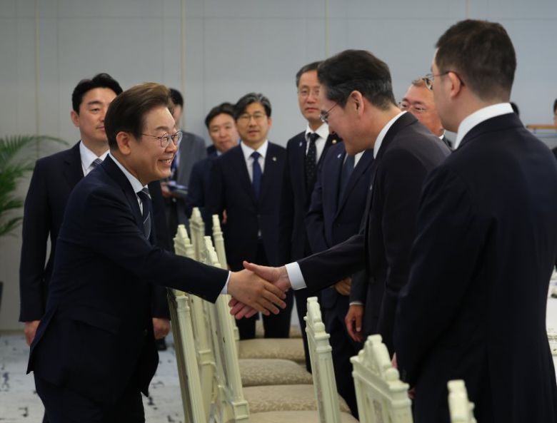 [파이낸셜뉴스]이재명 대통령이 13일 재계 총수들과 만났다. 대통령 선거 이후 취임 9일만에 국내 대표적인 5대 그룹 총수 및 경제 6단체장과 간담회를 열고 재계 의견을 경청했다.