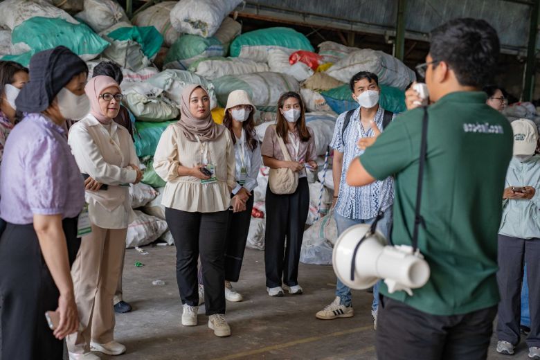 연수 참가자들이 현장견학지인 인도네시아 재활용샌터 ‘ecoBali’를 방문해 관계자 설명을 듣고 있다.[한국환경공단 제공] |