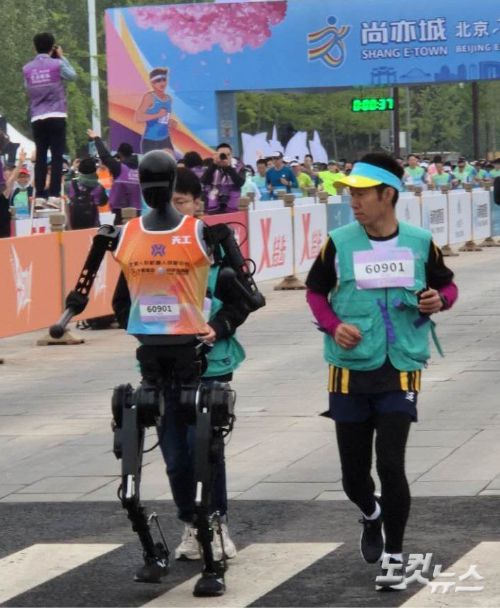 세계 최초 휴머노이드 로봇 마라톤 대회에서 우승한 톈궁. 임진수 베이징 특파원 |