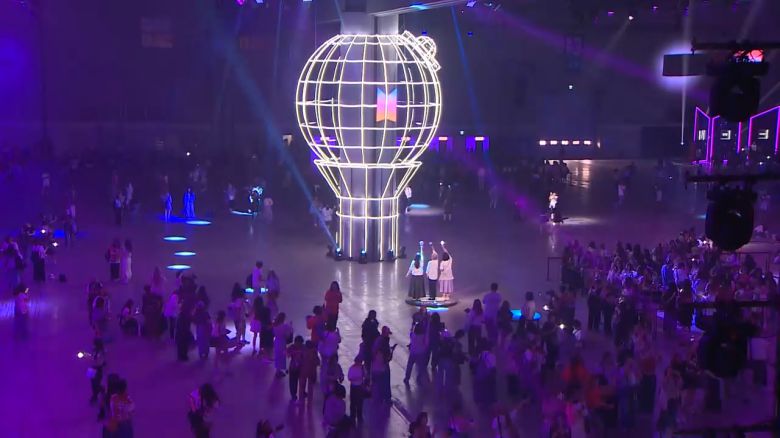 행사장 중앙에는 응원봉과 대형 고래 조형물이 반짝이고 있고, 팬들은 곳곳에서 웃으며 기념사진을 찍기 바쁜데요.