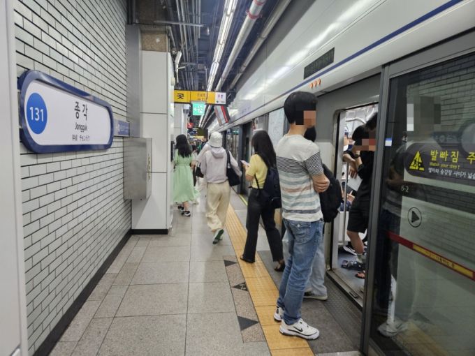 13일 오전 서울 종로구 1호선 종각역에서 시민들이 지하철에서 내리고 있다./사진=박상혁 기자. |