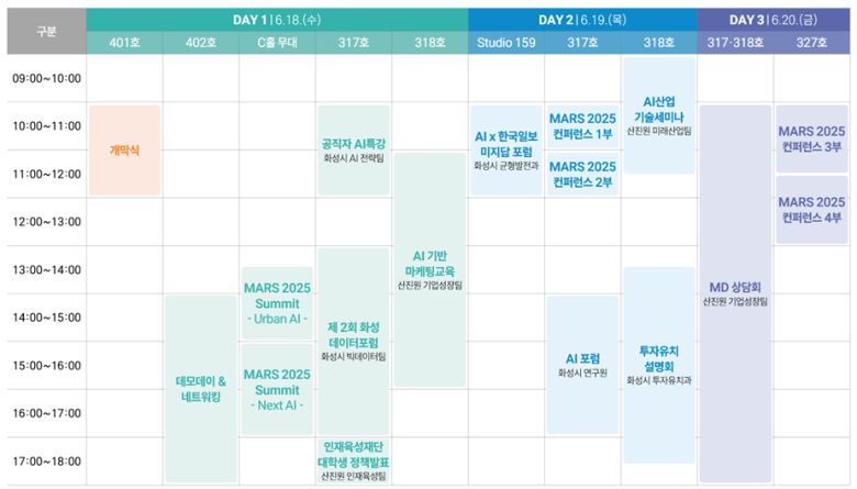 정명근 화성특례시장은 "MARS 2025는 AI 스타트업이 글로벌 투자자와 직접 연결되고 우리나라 AI 기술의 역량을 세계 시장에서 검증받는 기회의 장"이라며, "데모데이에서 선보여질 AI 기술 서비스와 상품이 글로벌 무대로 나아가는 출발점이 될 수 있도록 적극적으로 지원하겠다"고 밝혔다.