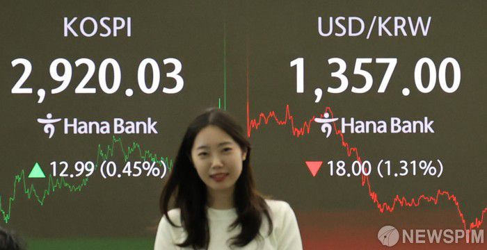 [서울=뉴스핌] 양윤모 기자 = 12일 오후 코스피가 전장 종가보다 12.99포인트(0.45%) 상승하며 2,920.03으로, 코스닥은 3.16포인트(0.40%) 상승한 789.45로 마감한 가운데, 서울 중구 하나은행 딜링룸에서 직원들이 업무를 보고 있다. 2025.06.12 yym58@newspim.com