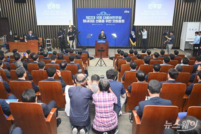 김병기 더불어민주당 원내대표 후보가 13일 오후 서울 여의도 국회 본관 제4회의장에서 열린 제2기 원내대표 선출을 위한 의원총회에서 정견 발표를 하고 있다. 사진=강민석 기자 kms@newsway.co.kr |