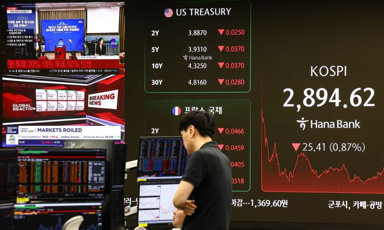 이스라엘의 이란 공습 소식에 원·달러 환율이 10원 넘게 치솟았다. 일주일 넘게 상승세를 이어가던 코스피지수도 2890선에서 하락 마감했다.