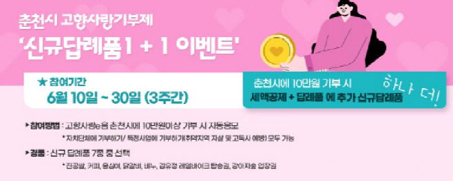 아시아투데이 장은기 기자 = "춘천에 고향사랑기부하고 신규 답례품 추가로 받아요."